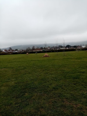 11:00 Lois goes for a solo walk on the local football field. I'm not joining her today - my NHS physiotherapist, Connor, has scheduled an exercise-day for me today. I persuade Lois to get more practice in with taking photos with her smartphone while she's on her walk, but the results are mixed.