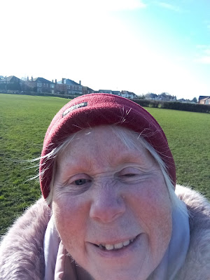 Luckily, as can be seen from the selfie above, Lois has taken her phone with her, which was really lucky, because today turns out to be a momentous day in the history of the so-called local "football field" - and she witnesses some of the first spade-fuls of earth dug up in the so-called extra-bit of the football field, to mark the start of the creation of the so-called "sensory garden", defined on line in the following terms: