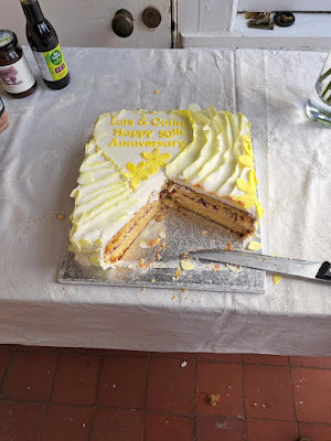 For Lois and me, this is the day of our belated Golden Wedding 'do', postponed from last August, so that the younger of our two daughters, Sarah and her family, could take part - they moved back to the UK from Australia a couple of months ago after 7 years "down under".