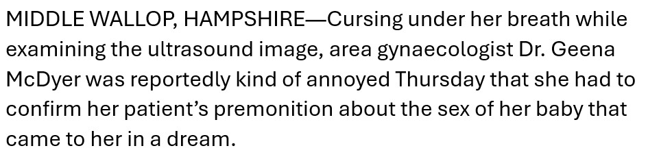 One local mum hit the jackpot in this department yesterday according to the East Hampshire Onion News - did you see the story? Just "thumb your way through" to page 94, where all the juiciest articles are to be found (which is my "supertip" for the day!Have I mentioned that before? [Only, like, a billion times, Colin! - Ed] ).