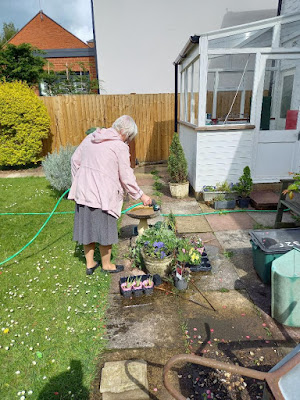 15:30 We go to our near neighbour Frances's house to water her greenhouse and plants in her absence: the greenhouse - yes, that makes sense. But her other plants are in any case soon going to get deluged by proper rain any moment, if the gathering storm clouds are any indication.