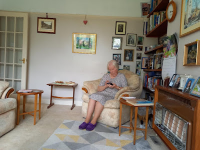 A lot of the time I find I am unfortunately left alone with Richard, and it's an odd experience - I'm not used to people with dementia. I soon discover there's no point in asking him questions, because he just ignores them, and speaks on random topics which come into his mind. And he has a tendency to wander off and disappear - he explores our house thoroughly, but he doesn't do any mischief or damage - he's essentially harmless. Hilary says he sometimes has a habit of putting ornaments etc in straight lines, but when I check later, everything looks the same way that it was, which is nice.