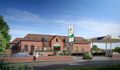 While we're still in bed, Warners, our usual supermarket in Upton-upon-Severn, which would be on our route today, emails me with a scary picture of the supermarket as an island amid floodwaters, and with the news that they may have to close temporarily due to the flooding. They suggest that their regular customers come along quickly and buy up some of their fresh food, which they're selling off cheap.
