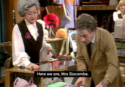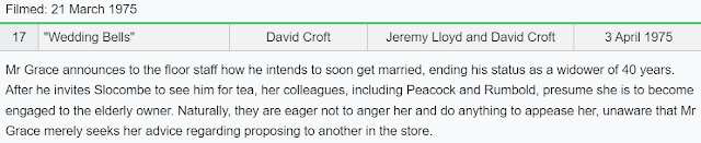 Also in this episode, the rumour is getting around the staff that the store's geriatric owner, "Young Mr Grace" is working up the nerve to ask Mrs Slocombe to be his wife. For her part, however, Mrs Slocombe insists that she hasn't made her mind up yet whether to say "yes" to Mr Grace or not.